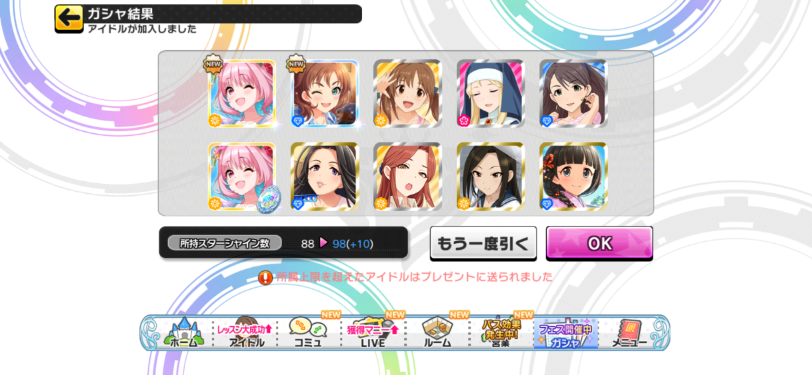 しかし、この330万人動員はけっこう骨が折れますが、今回はファン獲得2倍と重なっていたこともあり、1曲で獲得できるファン数もごつかったです。